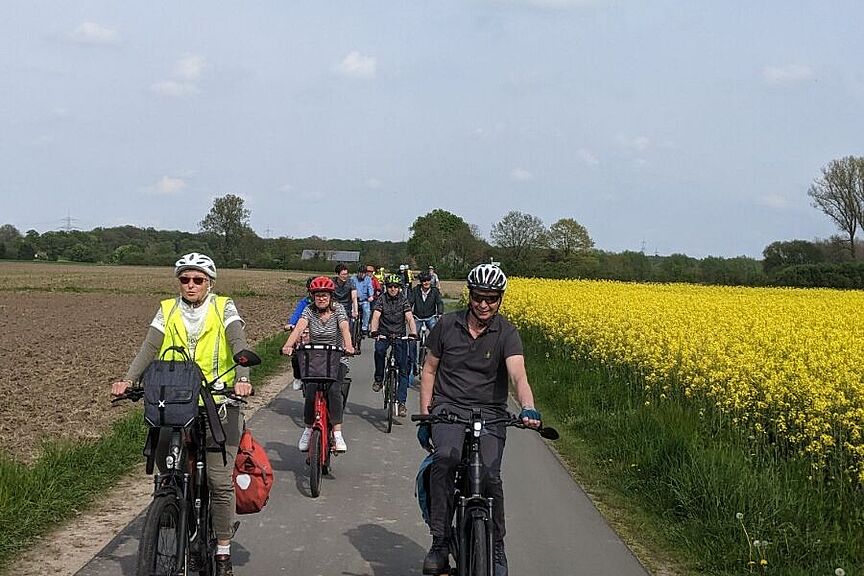 Am 6. Juni radelten Manfred Döpper, Jürgen Hupe und Peter Wolter mit 18 Neumitgliedern zum Haus Heidhorn der NABU Naturschutzstation. Es wären sicher noch mehr geworden, doch über 20 hatten im Vorfeld wegen anderen Termine leider absagen müssen.