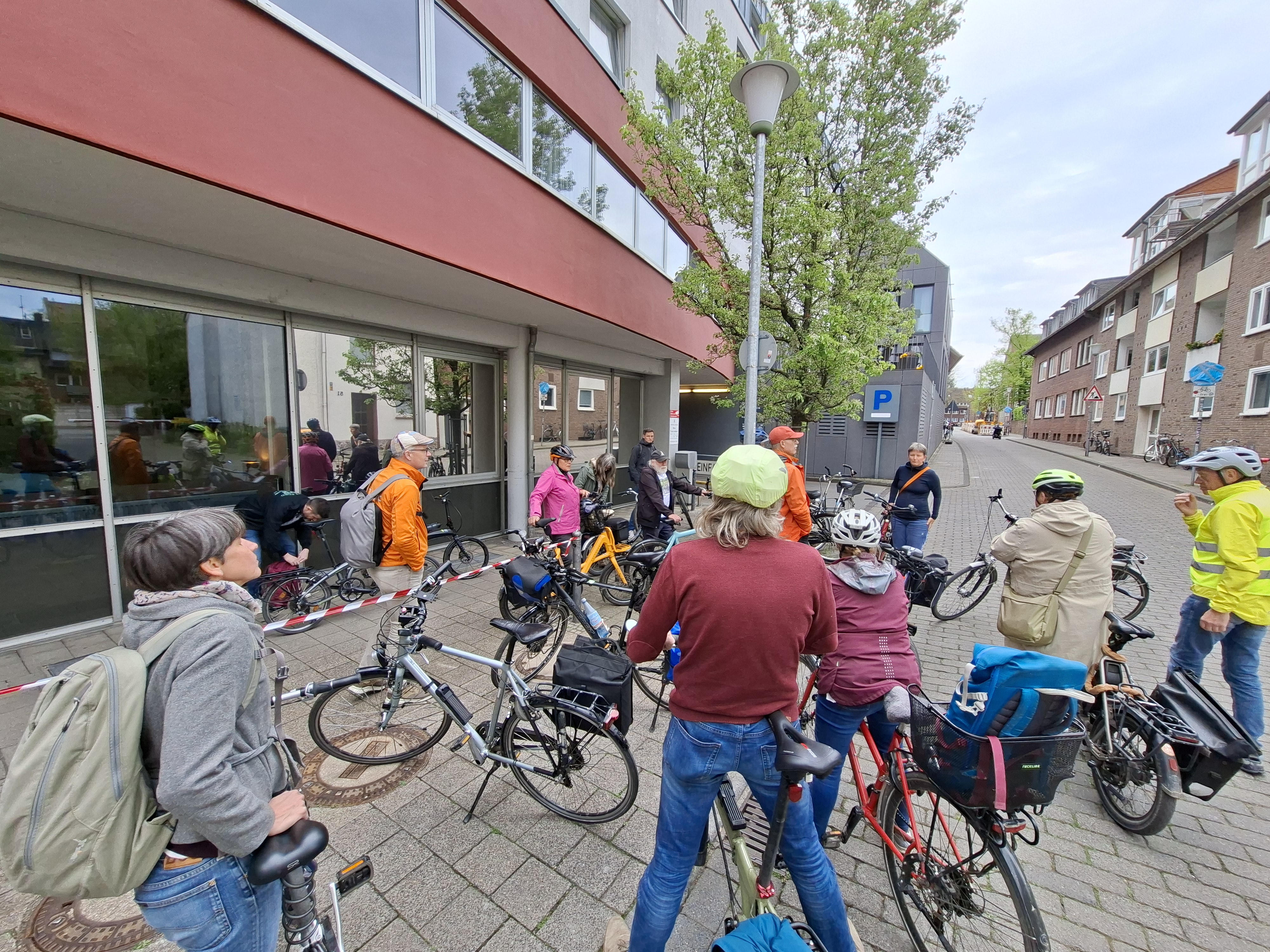 Gegen 17 Uhr waren alle 19 Tagesordnungspunkte abgearbeitet und Katja Siepmann, von der Fachgruppe Radverkehr, lud die Delegierten zu einer Verkehrspolitischen Radtour durch Münster ein. An mehreren Orten stellte sie Lösungen vor, wie durch einzelne Maßnahmen der Verkehr für Radfahrer und Fußgänger sicherer gestaltet werden konnte. Hier konnte sie als Insiderin die unterschiedlichen Standpunkte aus Stadtverwaltung und Politik erläutern und die notwendigen Kompromisse der getroffenen Entscheidungen darstellen.